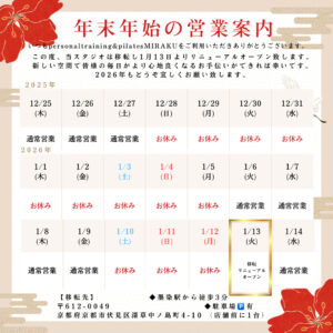 MIRAKUは通いやすい、通いたくなるピラティススタジオを常に目指します。 -