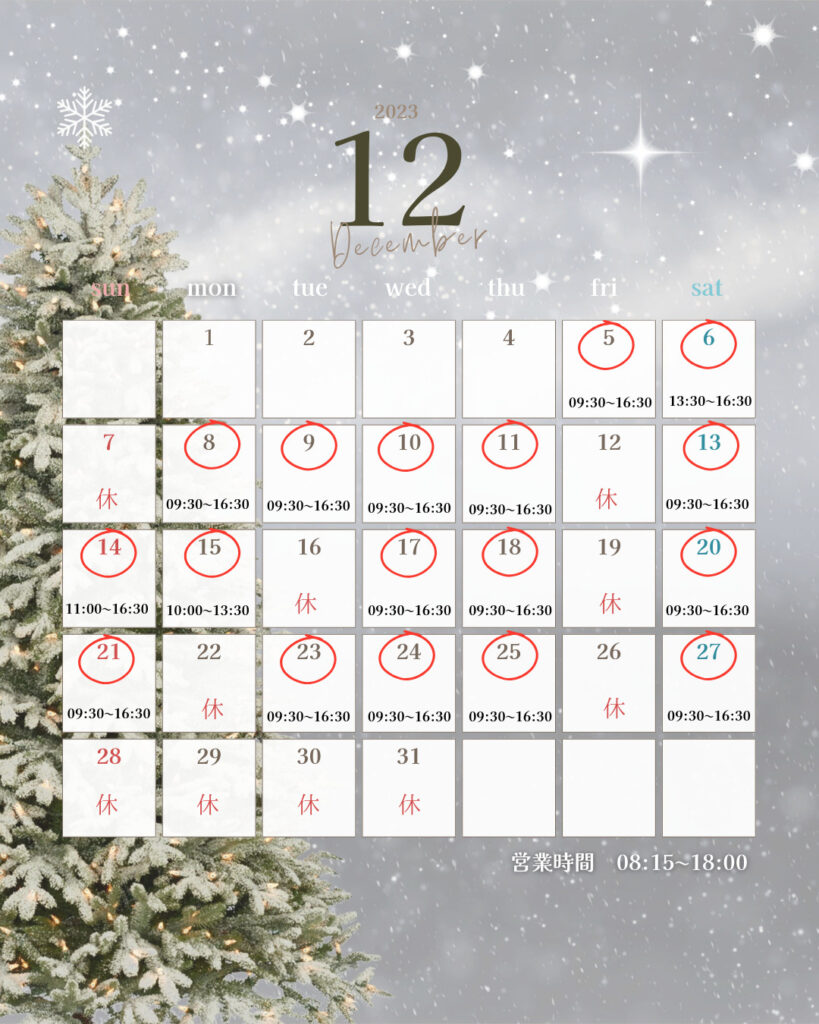 12月体験空き状況🌿