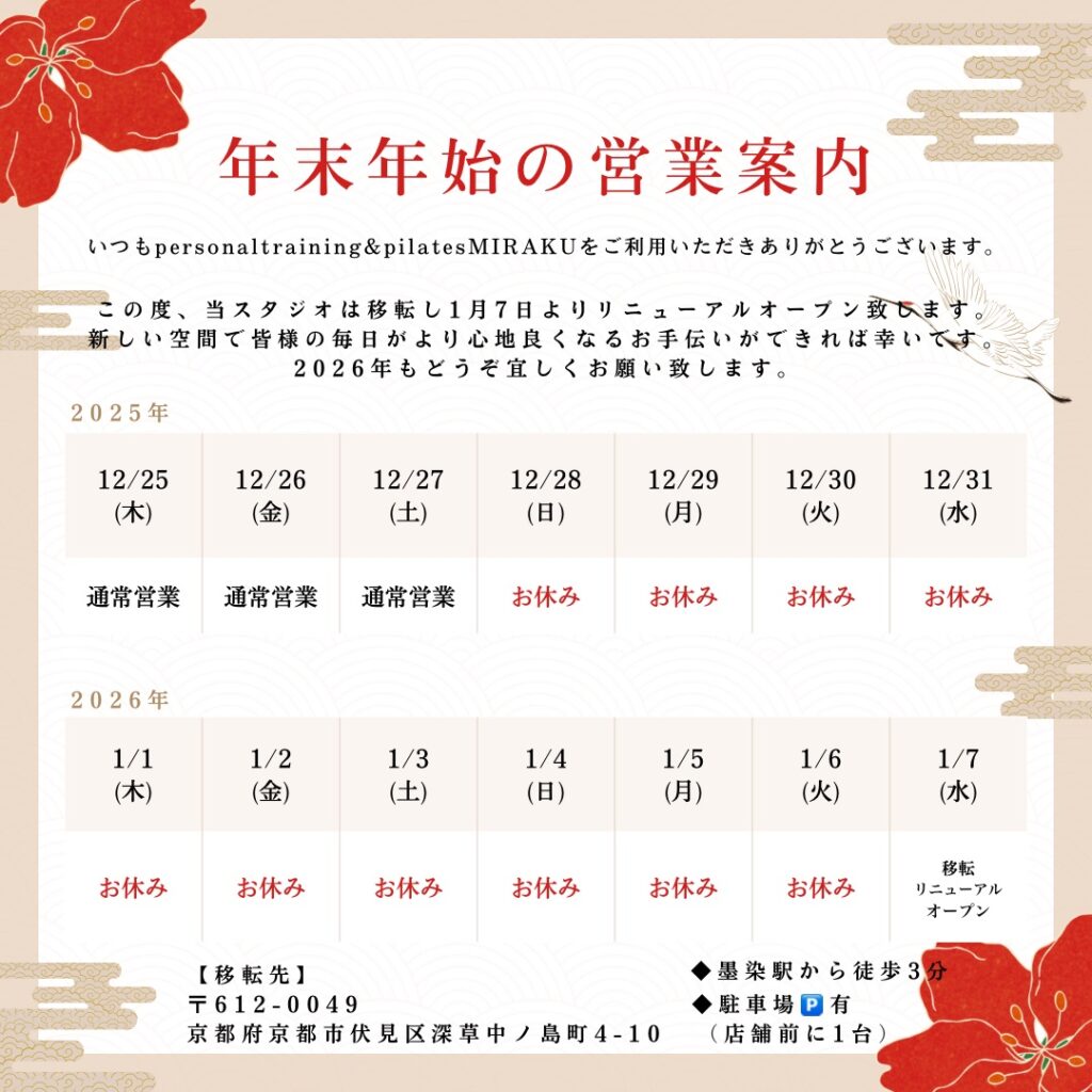 2025年12月28日〜2026年1月6日を休業日とさせて頂きます。